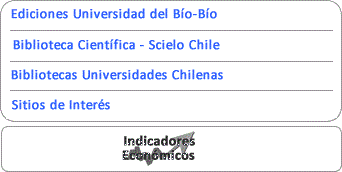 Ediciones Universidad del Bío-Bío Biblioteca Científica - Scielo Chile Bibliotecas Universidades Chilenas Sitios de interés Indicadores Económicos